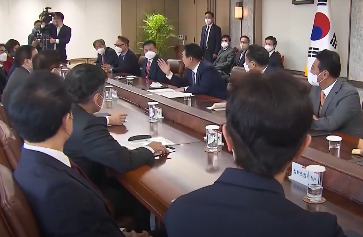 집무실 출근 직후 열린 첫 수석보좌관 회의에서 윤 전 대통령은 특별한 정책 지시 없이 인사말과 기본적인 국정 방향만 언급했습니다.