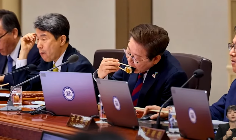 국무회의 도중 점심은 김밥으로 간단히 해결했습니다. 긴 회의 시간 동안 식사 시간조차 아끼는 모습을 통해 ‘일하는 대통령’ 이미지를 확고히 했습니다.