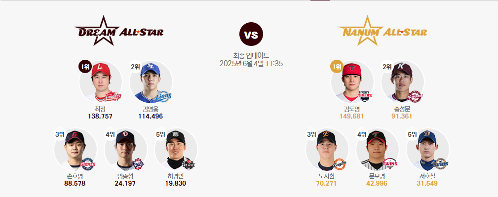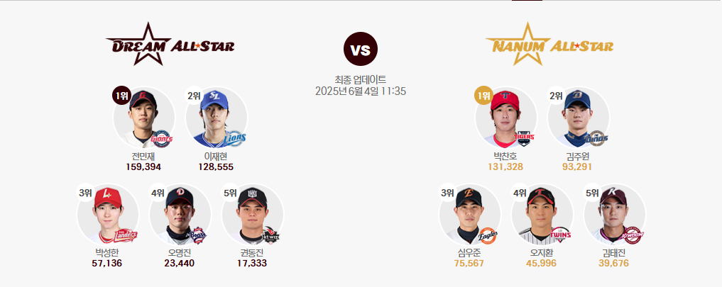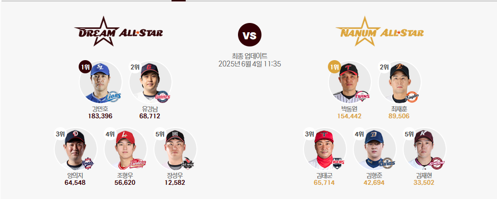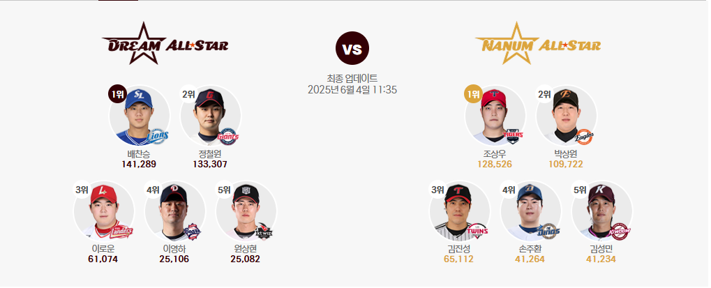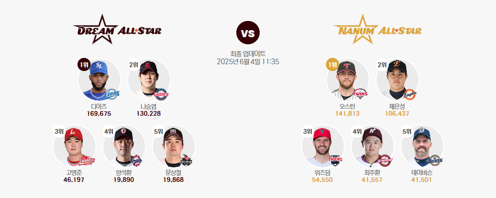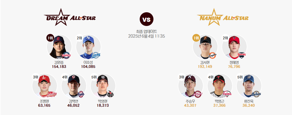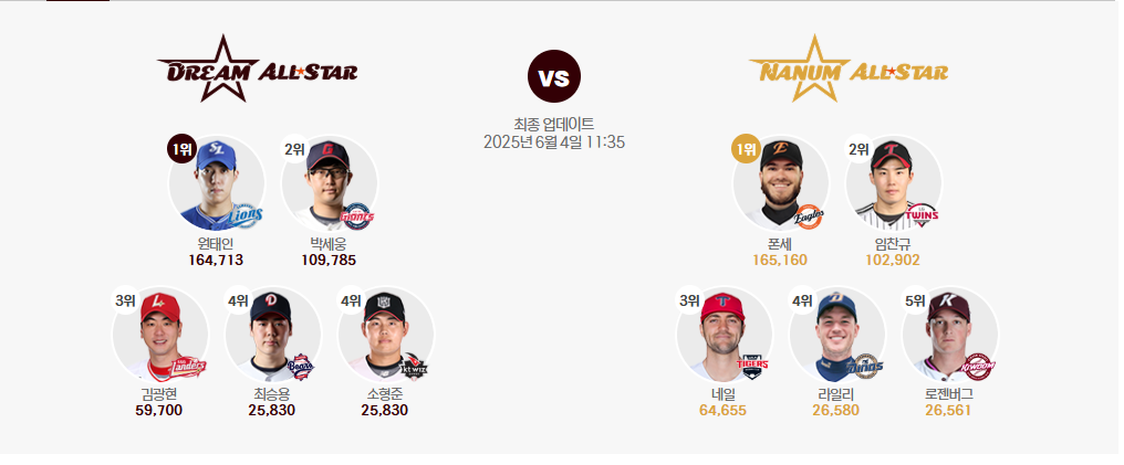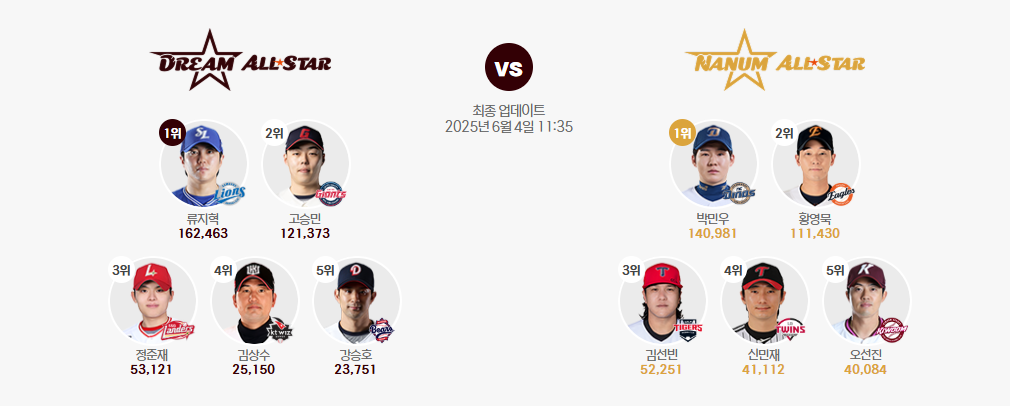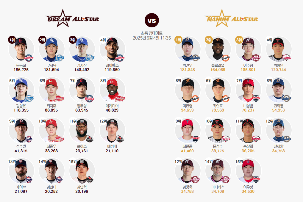 현재 2025 시즌은 각 팀이 치열한 순위 경쟁을 펼치고 있으며, 특히 상위권 팀들의 선수들이 올스타 투표에서 많은 관심을 받을 것으로 예상됩니다. 드림올스타에서 주목할 만한 선수로는 2006년생 신인 선수 중 유일하게 후보에 오른 배찬승이 있습니다.