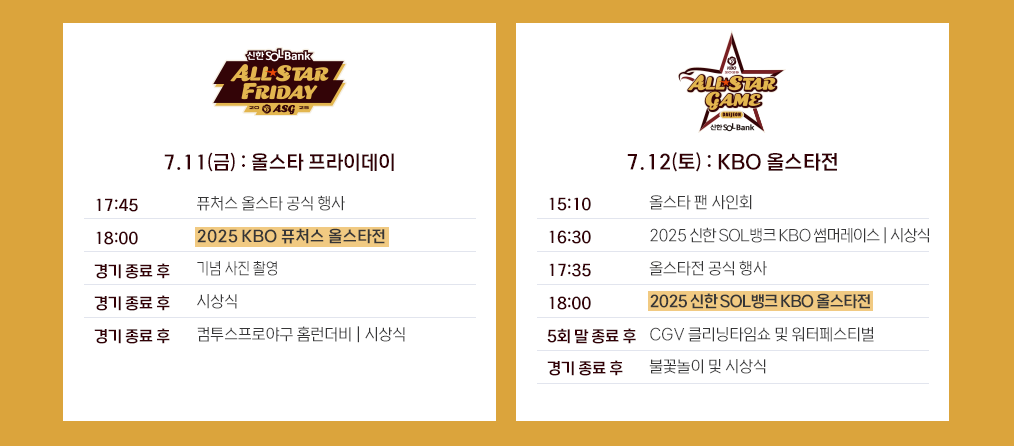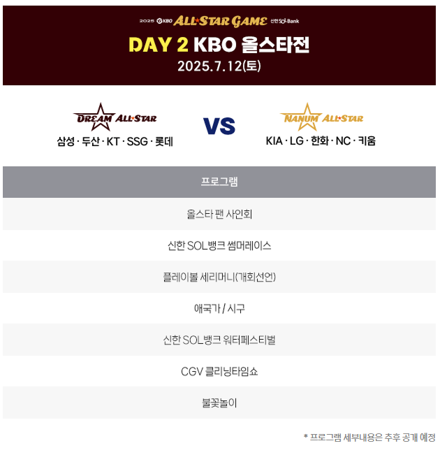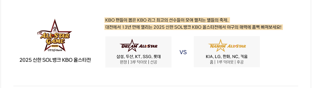 2025년 올스타전은 2012년 이후 13년 만에 대전에서 열리게 되었으며, 대전에서는 통산 4번째로 올스타전 개최지로 선정되었습니다.