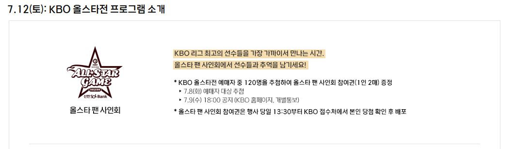 - 올스타 브레이크: 7월 11일(금) ~ 7월 16일(수) 6일간